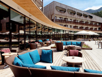 Wärme, Geborgenheit und Kraft liefern heimische Hölzer und Materialien. Traditionelle Muster und Formen schaffen spielerisch eine heitere Atmosphäre. Ein exklusives Interieur des italienischen Designers Lorenzo Bellini komplettiert das einladende Ambiente. Einfach edel, wertbewusst, modern, sinnlich behaglich und natürlich erholsam – Facetten die Sie in allen Räumen des außergewöhnlichen Resorts wiederfinden.