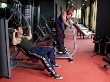 Wohlige Entspannung verspricht der Whirlpool im Badebereich. Das Fitnessstudio ist Teil des Sport- und Freizeitangebots des Hotels. In der Unterbringung werden verschiedene Wellnessangebote wie Sauna und Massage-Anwendungen offeriert.