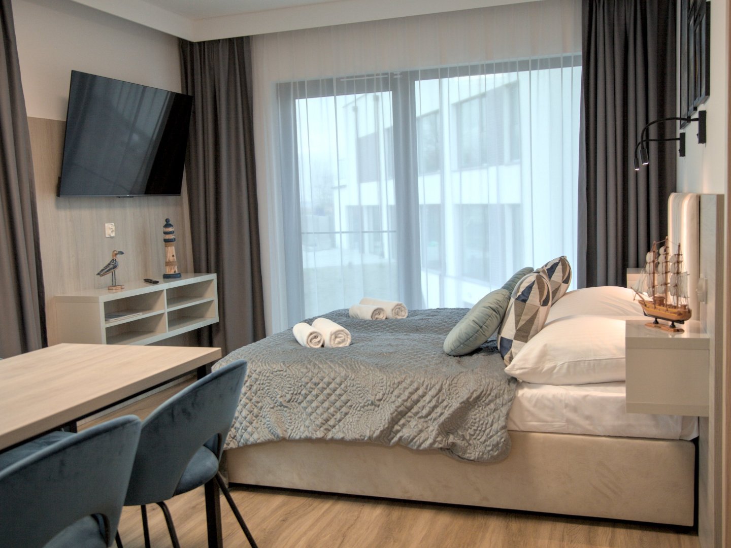 Neues Hotel an der Ostseeküste Das Hotel Gorzelanny bietet seinen Gästen 58 Ein- und Zwei-Zimmer-Apartments, die alle mit einem Küchenbereich, Klimaanlage und einem Balkon oder einer Terrasse (im Erdgeschoss) ausgestattet sind. Standardmäßig sind die Apartments mit einem Fernseher, einem Tisch und Stühlen, einem Kühlschrank sowie einem Herd eingerichtet. Jedes Badezimmer verfügt über eine Dusche, einen Haartrockner, Kosmetikartikel und Handtücher. Exzellente Lage direkt am See, nur 200 Meter vom Yachthafen entfernt und nur 700 Meter von einem der schönsten Strände Polens, der mehr als 60 Meter breit ist und seit 2013 jährlich mit der Blauen Flagge für hohe Wasserqualität und Sicherheit ausgezeichnet wird. Das Hotel Gorzelanny befindet sich in Dźwirzyno, einem ehemaligen Fischerdorf, das seit Jahrzehnten als beliebtes Urlaubsziel bekannt ist und eine Vielzahl von Übernachtungsmöglichkeiten und gastronomischen Angeboten bietet – von privaten Pensionen bis hin zu 4- und 5-Sterne-Hotels. Es ist auch ein idealer Ort für aktive Erholung, mit hervorragenden Radwegen entlang der Küste, einem Kletterpark sowie Verleihstationen für Fahrräder, Kajaks und Boote. Der Resko-See ist auch unter Anglern sehr bekannt. In Dźwirzyno gibt es zahlreiche Bars, Restaurants und Geschäfte, die Souvenirs und Kunsthandwerk anbieten. Es ist der perfekte Ort für einen Urlaub, weshalb jährlich etwa eine Viertelmillion Touristen hierher kommen.