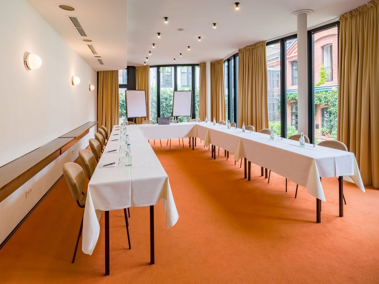 Design und Gefühl für guten Stil: Das ist im Domicil Hotel Bonn garantiert, denn hier wohnt man in einem Haus im besten Viertel der Stadt, das Stararchitekt Thomas an den Valentyn geschaffen hat. Die kühne Silhouette des Gebäudes macht neugierig auf die Atmosphäre im Inneren, die auch anspruchsvolle Gäste begeistert. Eine sonnige Freifläche lädt zum Verweilen im Freien ein und verleiht dem Haus an dieser Stelle ein fast schon mediterranes Flair . Hell und großzügig geschnitten präsentieren sich auch die Zimmer sowie der großzügige Frühstücksbereich, in dem man sich gerne morgens verwöhnen lässt und seinen Aufenthalt so richtig genießen kann. Ein tageslichtheller Konferenzraum macht das Haus auch für geschäftliche oder private Zusammenkünfte interessant.