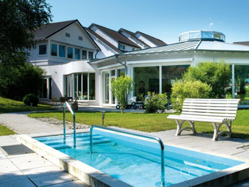 Im 4* Business & Wellnesshotel Traube Revital in Wurmlingen bei Tuttlingen erwartet Sie eine top gepflegte Wellnesslandschaft. Durch die bodentiefen Panoramafenster des Pools zum Garten hin haben Sie immer das Gefühl, im „Grünen“ zu schwimmen – und bei Sonnenschein ist die große Schwimmhalle wunderschön lichtdurchflutet. Sie schwimmen und entspannen in reinstem Quellwasser. Es ist angenehm temperiert (30 °C) und wird nur mit Ozon gereinigt. Lauschen Sie draußen beim Sonnenbaden dem kleinen Bächlein, das den Garten durchläuft, erfrischen Sie sich beim Kneippen, oder entspannen Sie in der Sauna. Bei 90 °C schmilzt jegliche Entspannung garantiert dahin. Für diejenigen, die lieber auf die sanfte Tour schwitzen, gibt es ein Sanarium. Und im Tepidarium entspannen Sie auf beheizten Steinbänken. Genießen Sie außerdem Massagen aus aller Welt und luxuriöse Körper- und Hautpflege. Das SPA Revital wird persönlich geführt von einer der beiden Hotelchefinnen – Ihre Schönheit und Ihr Wohlbefinden liegen also in den besten Händen.