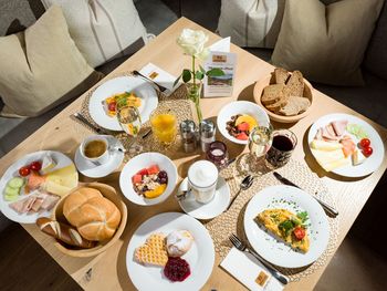 Frisch zubereitete Eierspeisen, Käse- und Joghurtvariationen aus der Zillertaler Heumilch-Sennerei, Wurst und Speck von heimischen Metzgern, Kaffee- und Teespezialitäten sowie frisch gepresste Säfte, Obst, u.v.m. Abends verwöhnen wir Sie mit einem 5-gängigen Genießermenü mit Wahlmöglichkeit, vegetarischen Gerichten, knackigem Salatbuffet und wöchentlich verschiedenen Themenbuffets. Bei Unverträglichkeiten bitten wir dies bei Buchung bekannt zu geben.