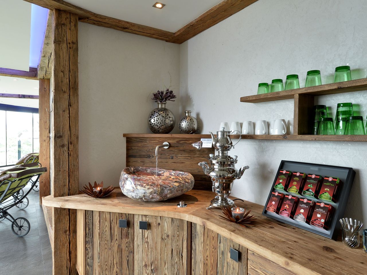 In gepflegtem und lichtdurchflutetem Ambiente des Ruheraums mit frischem Quellwasserbrunnen können Sie sich zurücklehnen und den Stress des Alltags weit hinter sich lassen. Tanken Sie Kraft in der Kräuter-Zirbensauna, in der finnischen Sauna oder im Dampfbad. In der Infrarotkabine genießen Sie angenehme Wärme, welche das Wohlbefinden steigert und zur Linderung zahlreicher Beschwerden beiträgt. Der Blick auf die wunderschöne Landschaft rund um das Hotel Waldfriede und das imposante Bergpanorama schenkt Ihnen neue Kraft und innere Harmonie.