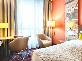 Erleben Sie eine unvergessliche Auszeit mit der ganzen Familie im Leonardo Hotel Wolfsburg und genießen Sie einen erlebnisreichen Tag im BadeLand Wolfsburg. Nach einer entspannten Nacht in unseren komfortablen Zimmern starten Sie mit einem reichhaltigen Frühstück gestärkt in den Tag. Anschließend erwartet Sie im BadeLand Wolfsburg Wasserspaß für Groß und Klein: Wellenbecken, rasante Rutschen und eine vielseitige Saunalandschaft sorgen für Action und Erholung zugleich. Dank der zentralen Lage unseres Hotels erreichen Sie zudem weitere Attraktionen wie die Autostadt oder das Phaeno Science Center in kürzester Zeit. Bitte beachten Sie die geänderten Öffnungszeiten des BadeLandes an Feiertagen. Das Angebot ist an Wochenenden und in den Ferien buchbar. Sichern Sie sich jetzt Ihre Familienauszeit und freuen Sie sich auf unvergessliche Momente in Wolfsburg.