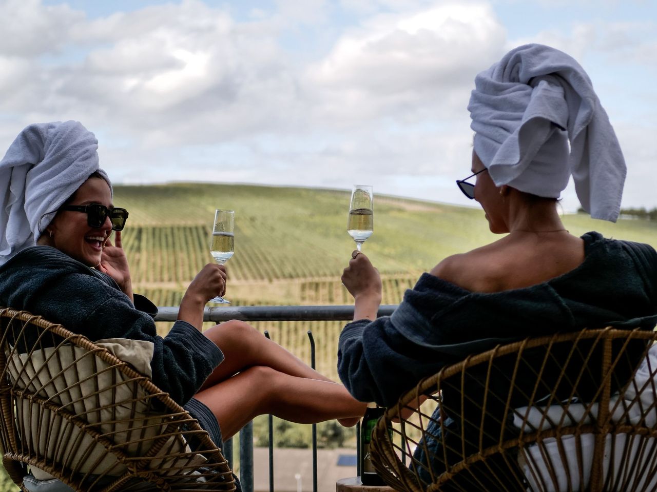 Nur 25 Lofts und Lodges zählt das kleine Boutiquehotel. Mal für Paare oder Alleinreisende/r. Mal für größere Einheiten von vier bis sechs Personen, z.B. Freundesrunden zur Weinreise oder zum Wellnessretreat. Auch Urlauber mit Hund sind herzlich willkommen. Die Zimmer sind in erdigen und ruhigen Farben gehalten, mit Balkonen bzw. Terrassen veredelt und verfügen größtenteils sogar über eine eigene, vollausgestattete Küche. Obwohl der Stil sich gleicht, lebt jeder Raum mit seiner individuellen Note aus Liebhabereien und Nettigkeiten, wie Kosmetiktisch oder Spiegelwand, Schaukelstuhl oder Ledersofa.