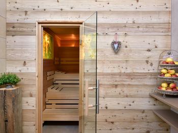 Eine Bio-Sauna, eine Finnische Kräutersauna, ein Dampfbad mit Sternenhimmel sowie ein Eisbrunnen zum Abkühlen und eine Wärmebank mit Kneippbecken laden zum Entspannen ein.