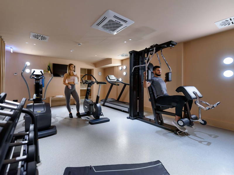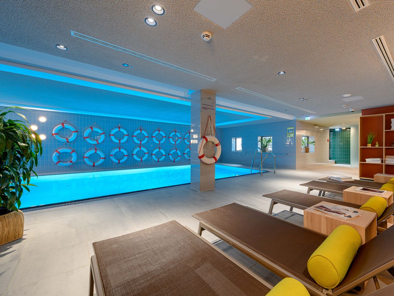Genießen Sie die Zeit im hoteleigenen Wellnessbereich mit Schwimmbad, Sauna und dem Fitnessraum.