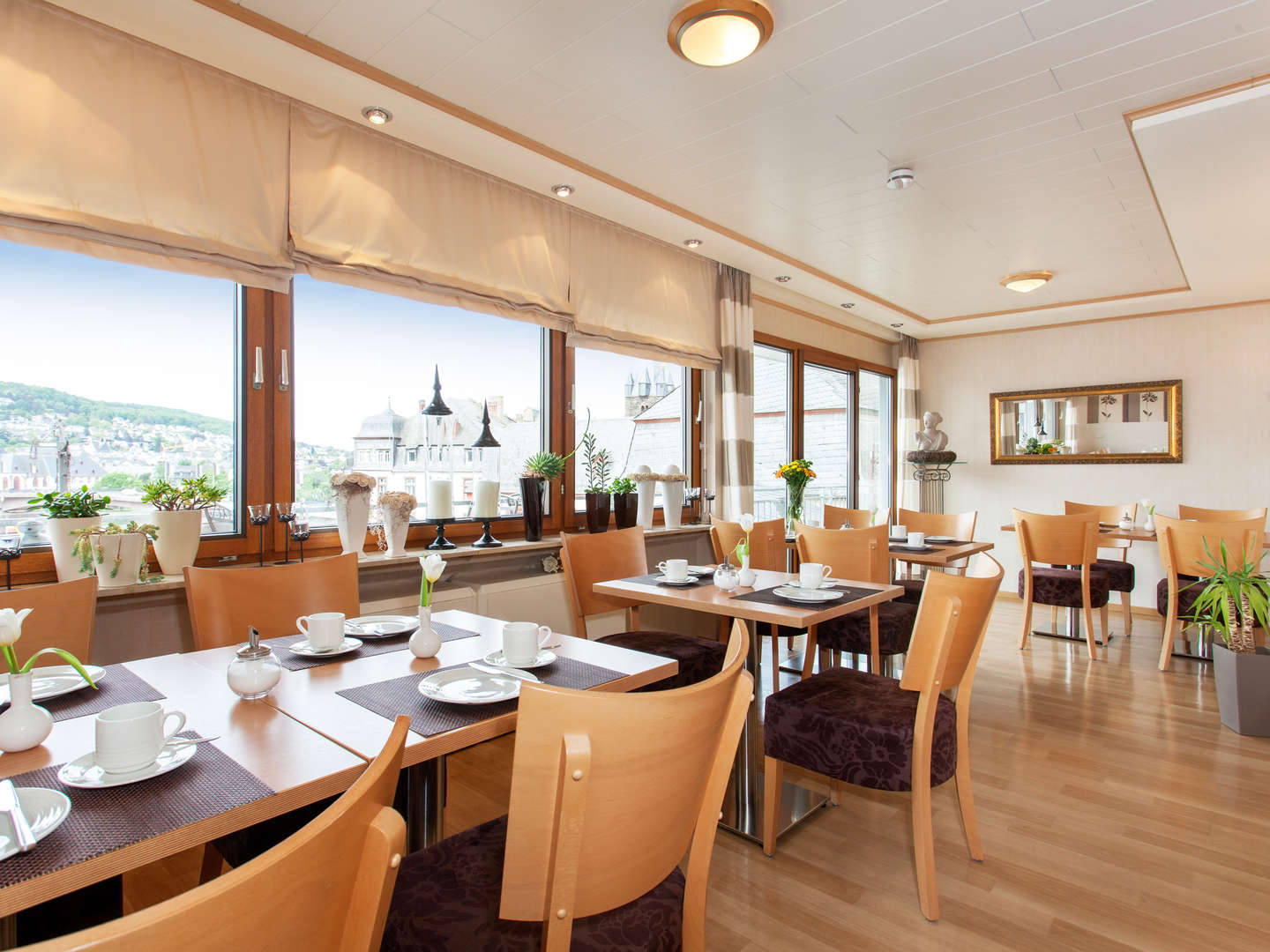täglich reichhaltiges Frühstücksbuffet über den Dächern Ambergs