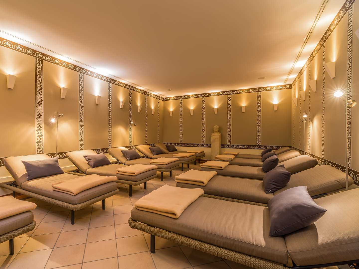 Wellness nach Vorbild des antiken Roms? Nach Art einer römischen Therme erwartet Sie unser Wellnessbereich Relaxarium: die erneuerte Sauna, das römische Dampfbad, das Laconium und die Eisgrotte werden hier mit moderner Massage und Beautybehandlung verknüpft. Verwöhnt wird hier ausschließlich mit hochwertigen Markenprodukten. Bei Buchung einer Massage- oder Kosmetik-Anwendung ist der Wellnessbereich inklusive. Gerne können Sie den Wellnessbereich, auch ohne Anwendung, für 15,00 € pro Person und Tag nutzen.