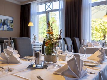 täglich abwechslungsreiches Frühstücksbuffet, auf Wunsch mit Glas Sekt (im Sommer auf der Sonnenterrasse), u.a. mit verschiedenen Kaffeespezialitäten und hausgekochten Marmeladen und 2x Abendessen aus der regionalen, deutschen Küche