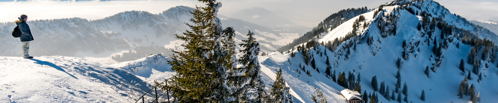 Los geht es mit einer einfachen Schneeschuhtour bei Immenstadt. Der Aufstieg zum Gipfel des Mittag wird von diversen Veranstaltern als geführte Tour angeboten und eignet sich für Gäste aller Altersklassen. In knapp zwei Stunden überwinden Sie knapp 850 Höhenmeter und werden von einem schönen Panorama über die Allgäuer Alpen belohnt.