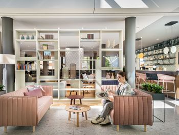 Die 126 modernen Zimmer auf 5 Etagen verfügen über einen kleinen Kühlschrank, einen Flat-TV, bequeme Boxspringbetten, einen privaten Safe, einen Schreibtisch, einen schicken Schalenstuhl und einen Balkon. Das großzügige Bad im puristischen Stil mit ebenerdiger Dusche, Föhn, hochwertigen Armaturen und viel Ablagefläche dient als privater Wellnessbereich.