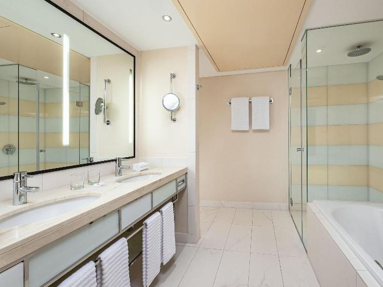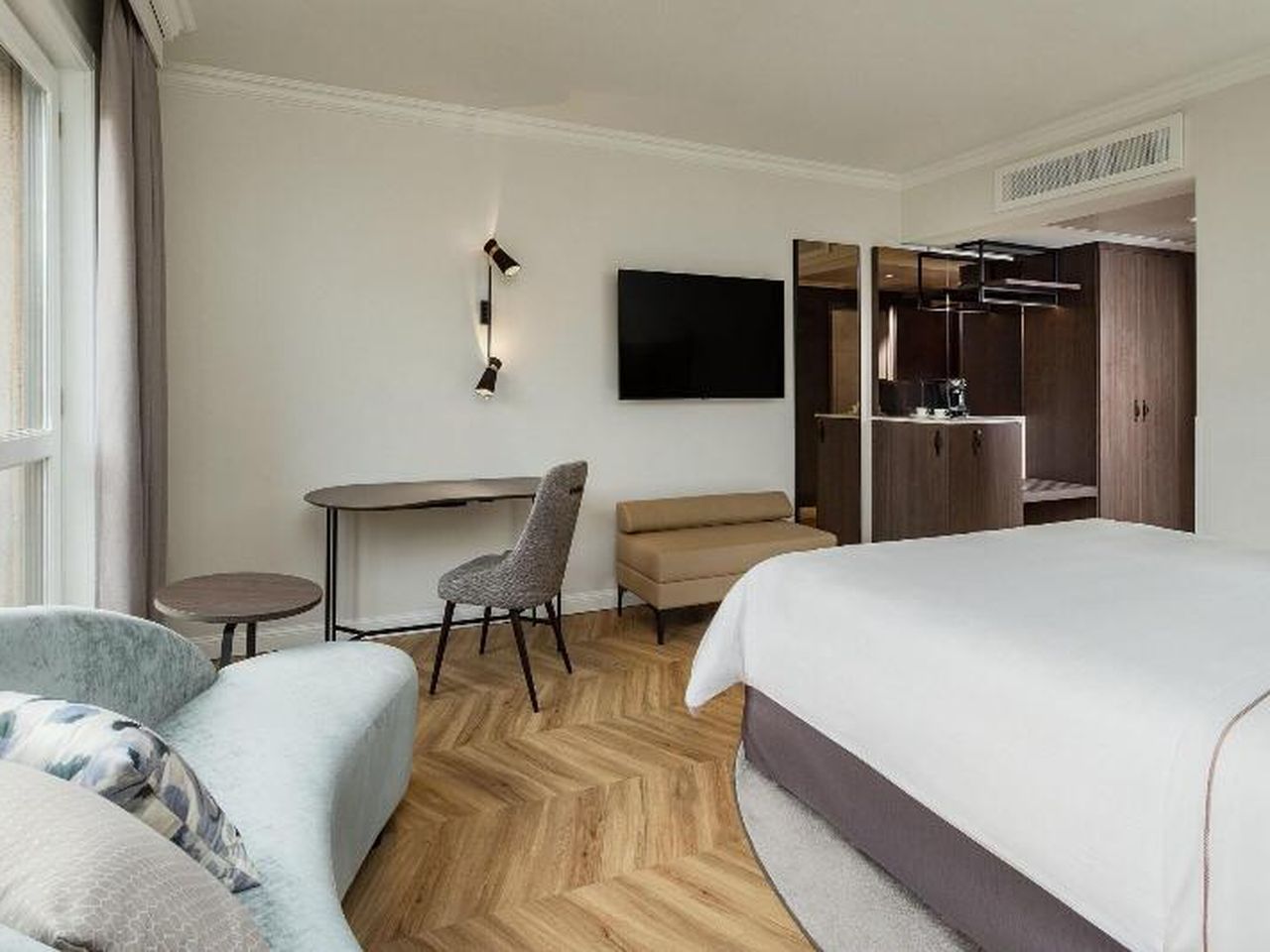Für angenehmes Raumklima in den Zimmern sorgen eine Klimaanlage und eine individuell steuerbare Heizung. In den meisten Zimmern zählt ein Balkon zum Standard. Die mit Teppichböden ausgestatteten Zimmer verfügen über ein Doppelbett oder ein Kingsize-Bett. Zustellbetten können angefordert werden. Außerdem sind ein Safe, eine Minibar und ein Schreibtisch verfügbar. Auch eine Tee-/Kaffeemaschine ist vorhanden. Ein Bügelset ist für den zusätzlichen Komfort der Gäste verfügbar. Darüber hinaus sind ein Telefon mit Direktwahl, ein TV-Gerät mit Satelliten-/Kabelempfang, ein Radio und WiFi (gegen Gebühr) vorhanden. Zudem können die Gäste den Gute-Nacht-Service in Anspruch nehmen. Eine Kopfkissenauswahl verspricht gemütliches Wohlbefinden. Die Badezimmer sind ausgestattet mit einer Dusche oder einer Badewanne. Für den täglichen Gebrauch stehen ein Haartrockner, ein Kosmetikspiegel und Bademäntel zur Verfügung. Für besonderen Komfort in den Badezimmern sorgen Kosmetikartikel. Außerdem sind rollstuhlgerechte Zimmer mit barrierefreiem Badezimmer buchbar.