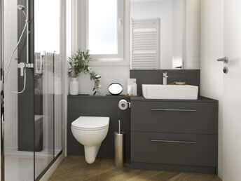 Luxuriöses Badezimmer mit Regen-Dusche, Waschbecken, WC, Fön, Handtuchwärmer, inkl. Hand- und Badetücher plus kuscheliger Bademäntel.