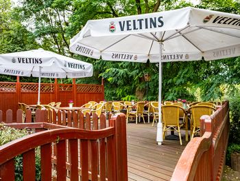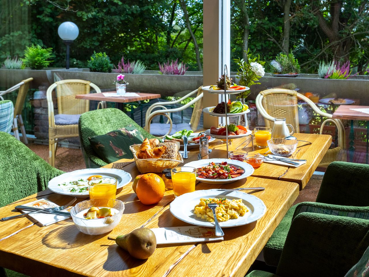 Neben der Bar werden Sie im Restaurant „Goethestube“, dem Wintergarten mit Panoramablick oder dem Biergarten mit Grillplatz mit bergischen und internationalen Spezialitäten verwöhnt.