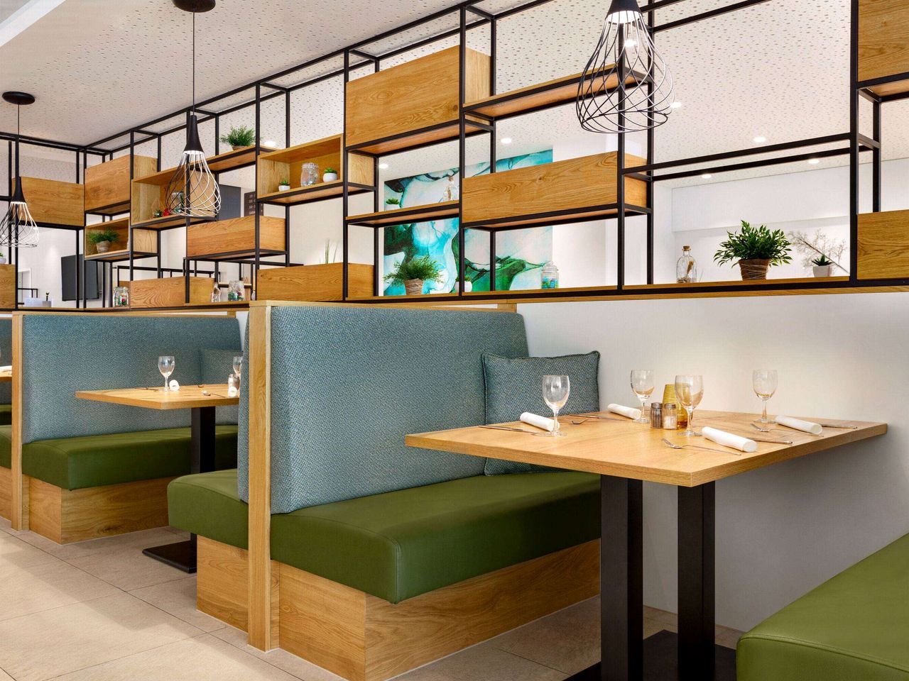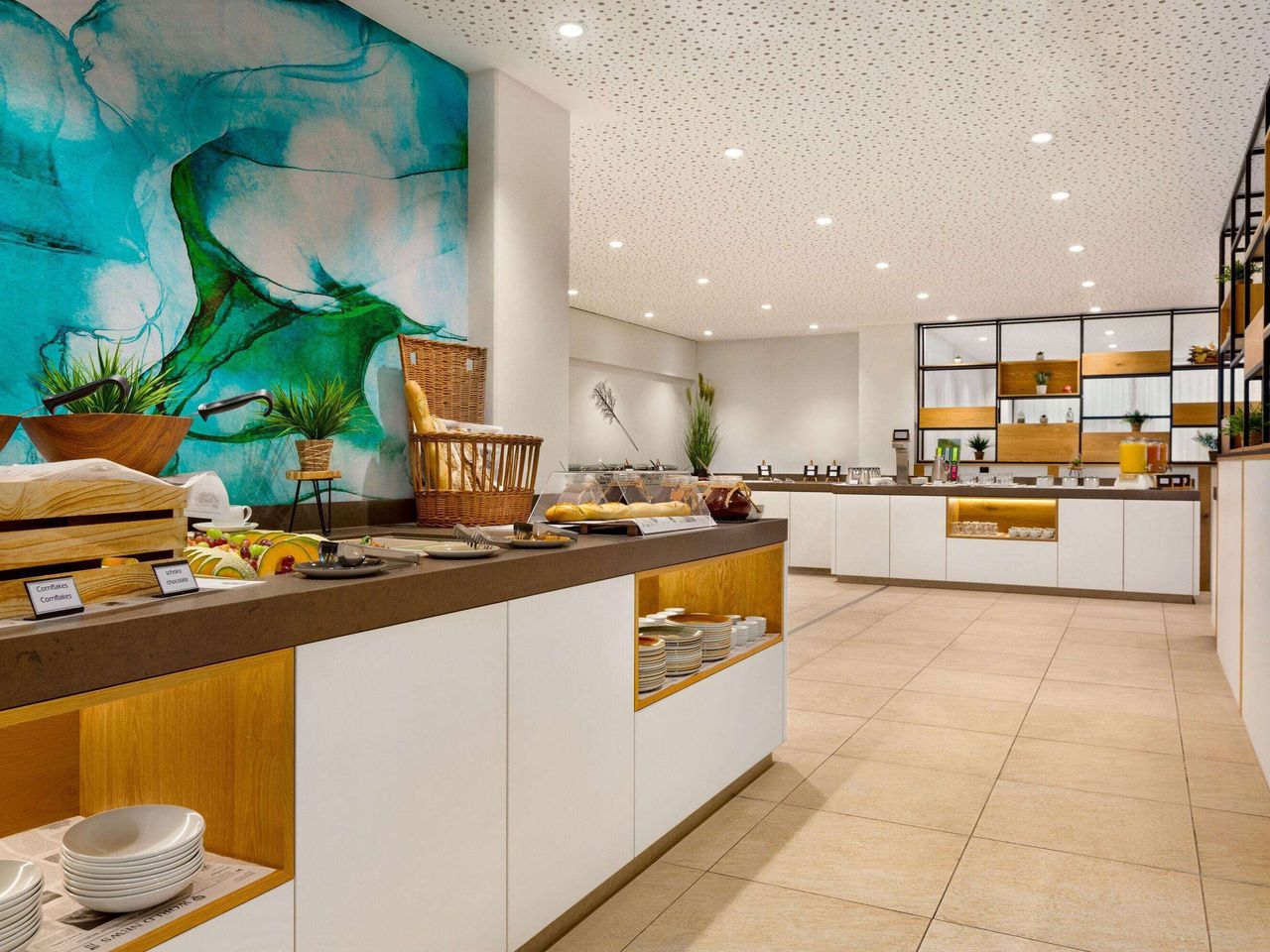 Die gastronomischen Einrichtungen umfassen ein Restaurant, einen Frühstückssaal und eine Bar. Ein reichhaltiges Frühstücksbuffet garantiert einen guten Start in den Tag. Bei schönem Wetter können die Gäste den Essbereich im Freien nutzen.